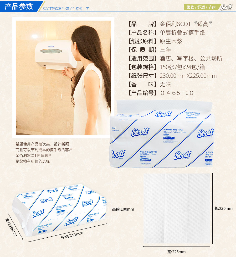 金佰利Scott适高0465抽取式擦手纸金佰利商用折叠擦手纸纸抽纸巾商用